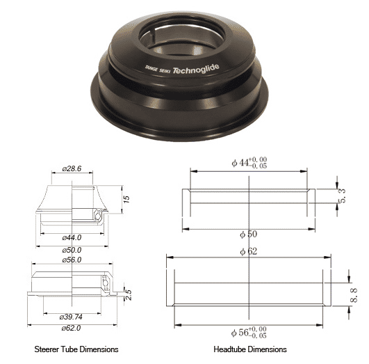 Tange Seiki Technoglide IS245 Tapered Fully Integrated Bicycle Headset Black