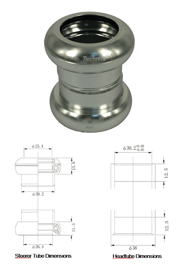 Tange Seiki Technoglide 32-RDC Threadless 1 Inch Aluminum Bicycle Headset Silve